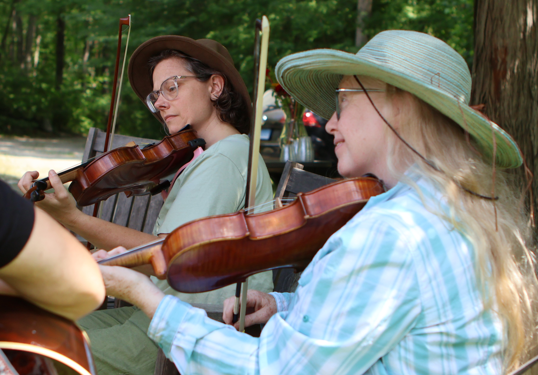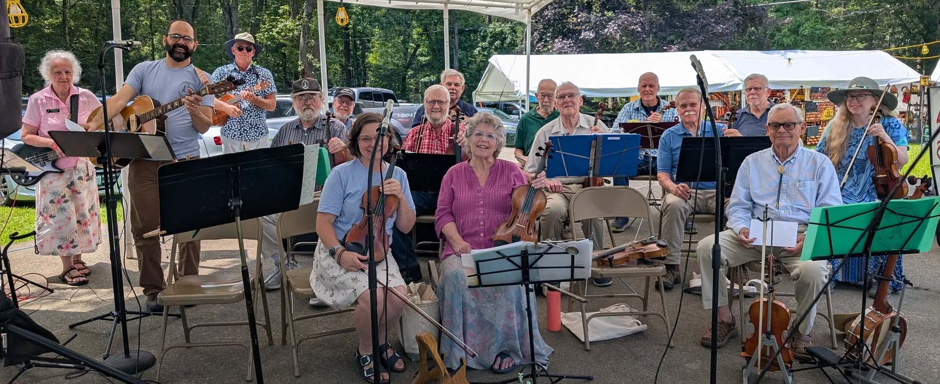 June 4, 2017 – Family and friends gathered in the Community Room at Salem Village in Brooklyn, CT to celebrate Trudy’s 90th birthday. Still fiddlin’ away Trudy treated everyone to her signature tune – “Grandfather’s Clock”